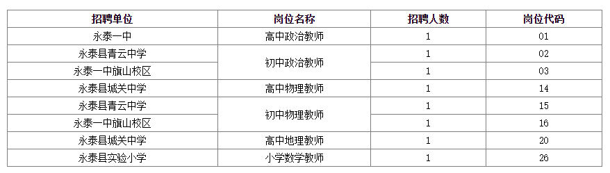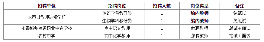 ?。ㄒ唬┑谝活悾?024年永泰縣公開招聘優(yōu)秀畢業(yè)生和緊缺學(xué)科教師補(bǔ)充崗位、人數(shù)