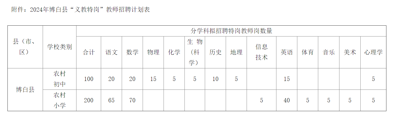 附件:1.2024年博白縣“義教特崗”教師招聘計(jì)劃表