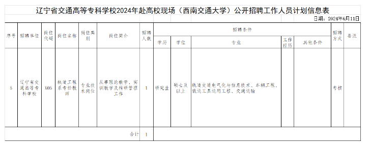 遼寧省交通高等??茖W(xué)校2024年赴高校現(xiàn)場(西南交通大學(xué))公開招聘工作人員公告