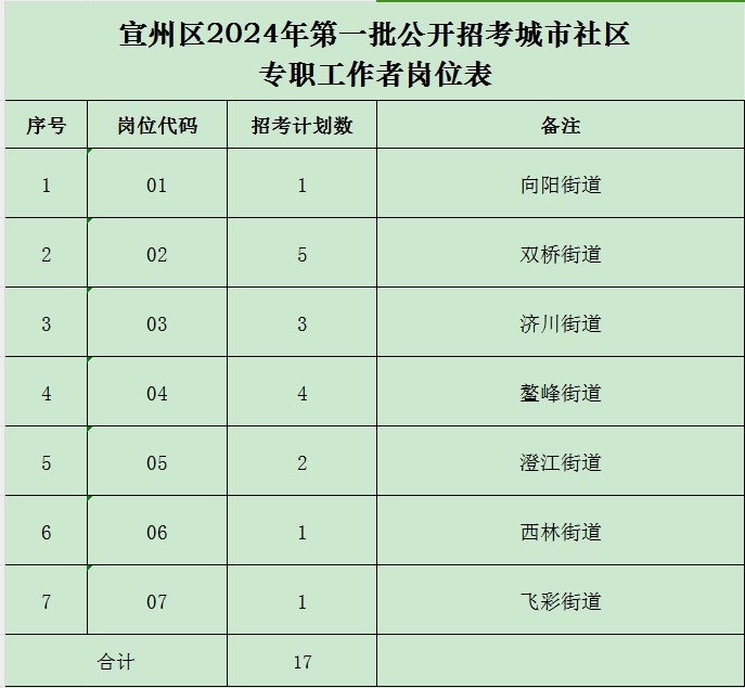宣州區(qū)2024年第一批公開(kāi)招考城市社區(qū)專職工作者公告