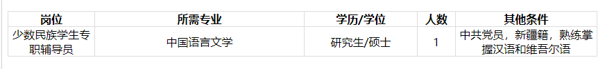 3.專任教師和心理健康教育專職教師需具備較強(qiáng)的教學(xué)科研能力;少數(shù)民族學(xué)生專職輔導(dǎo)員需熟練掌握應(yīng)用漢語和維吾爾語;