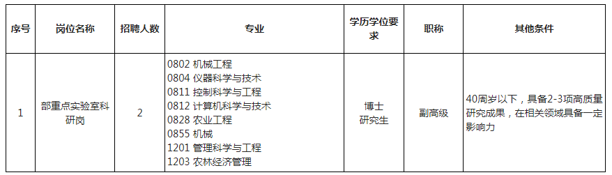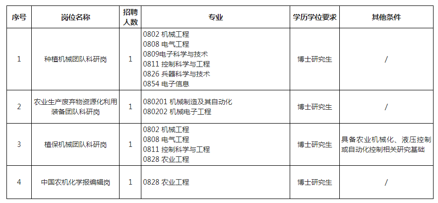 農(nóng)機(jī)化所研究方向涉及“農(nóng)業(yè)裝備工程與信息”“農(nóng)業(yè)經(jīng)濟(jì)與農(nóng)村發(fā)展”“農(nóng)業(yè)微生物”“農(nóng)業(yè)資源與環(huán)境”等多個(gè)學(xué)科集群,是農(nóng)業(yè)工程科研領(lǐng)域國家級研究所。為實(shí)現(xiàn)研究所轉(zhuǎn)型創(chuàng)新發(fā)展,更好地選拔優(yōu)秀人才,加強(qiáng)人才隊(duì)伍和科研創(chuàng)新能力建設(shè),決定面向國內(nèi)外招聘事業(yè)編制科研崗位工作人員,現(xiàn)將有關(guān)事項(xiàng)公告如下。