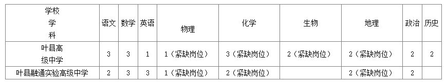 招聘學(xué)校咨詢電話:葉縣高級中學(xué):0375-8086729;葉縣融通實驗高級中學(xué):0375-8051329。