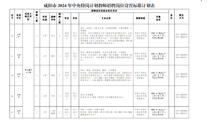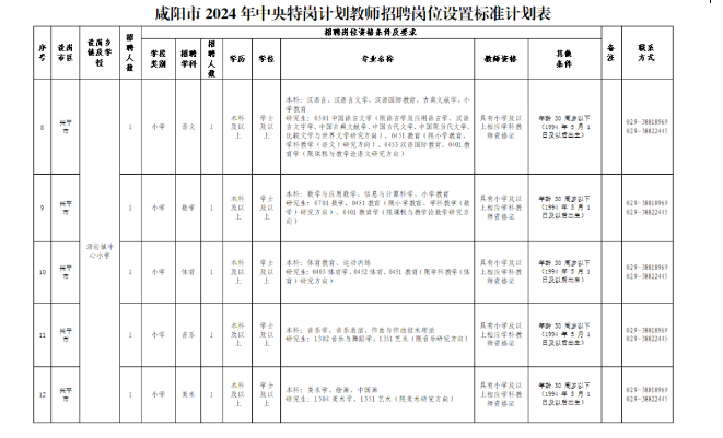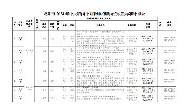 ?。ㄒ唬┕夹枨?。6月13日前,向咸陽(yáng)市特崗辦報(bào)送2024年招聘計(jì)劃、特崗教師崗位設(shè)置標(biāo)準(zhǔn)及公開(kāi)招聘辦法等。6月18日起,在陜西省教育廳門戶網(wǎng)站(網(wǎng)址:http://jyt.shaanxi.gov.cn/)等平臺(tái)發(fā)布招聘信息。