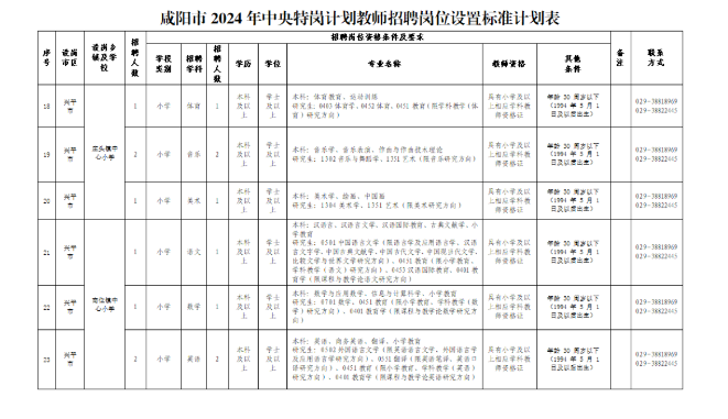 根據(jù)陜西省教育廳、省委編辦、省財(cái)政廳、省人力資源和社會(huì)保障廳和省醫(yī)療保障局《關(guān)于做好2024年農(nóng)村義務(wù)教育階段學(xué)校教師特設(shè)崗位計(jì)劃實(shí)施工作的通知》(陜教〔2024〕22號(hào))文件精神,現(xiàn)就興平市2024年農(nóng)村學(xué)校特設(shè)崗位教師招聘公告如下: