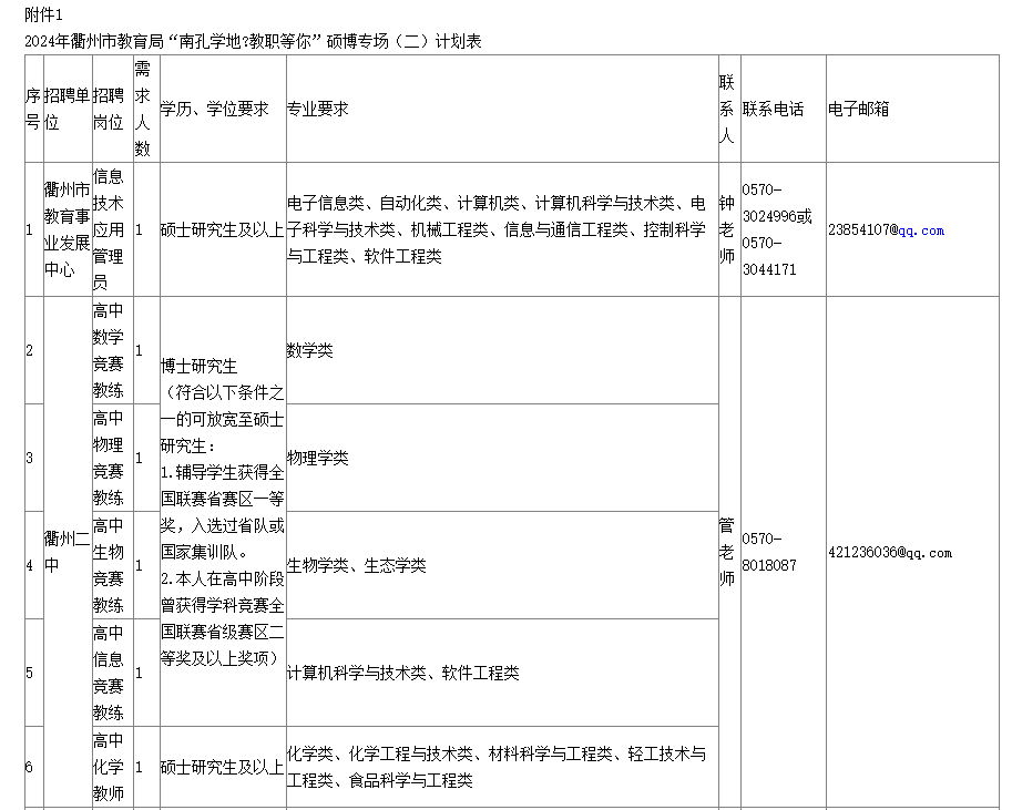 1.《2024年衢州市教育局“南孔學(xué)地?教職等你”碩博專場(二)報名表》(詳見附件2)。