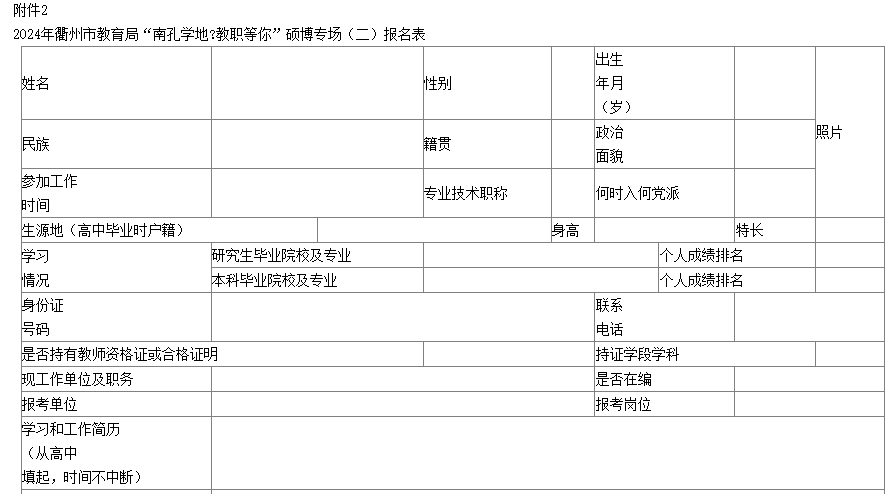 2.2024年衢州市教育局“南孔學(xué)地;教職等你”碩博專場(二)報名表