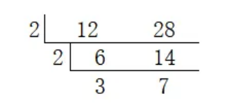 12、28的最大公約數:2×2=4;