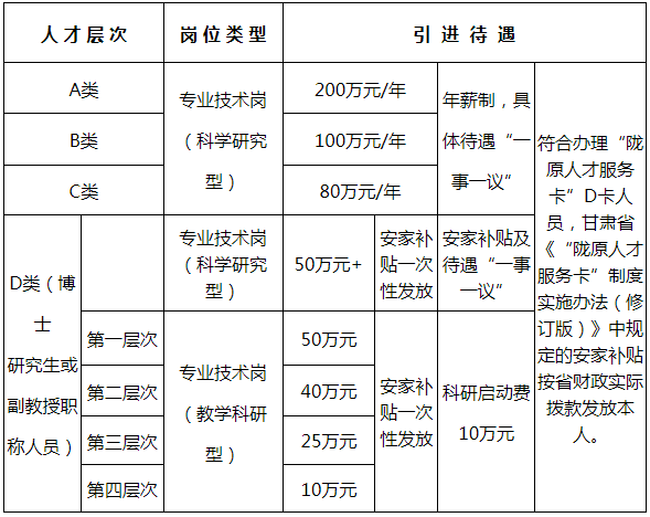 二、引進(jìn)層次及待遇