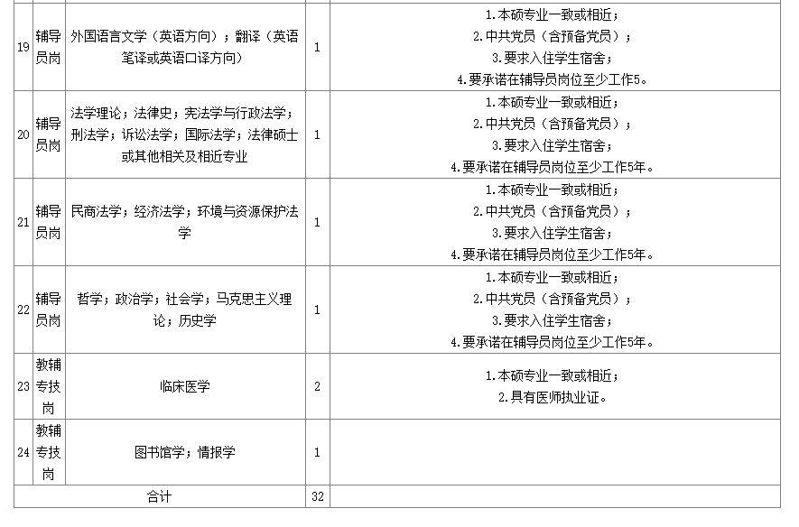 3.每人限報(bào)我校1個(gè)應(yīng)聘崗位,填報(bào)多個(gè)崗位的,視為無(wú)效報(bào)名并取消報(bào)名資格,請(qǐng)應(yīng)聘者慎重選報(bào)。