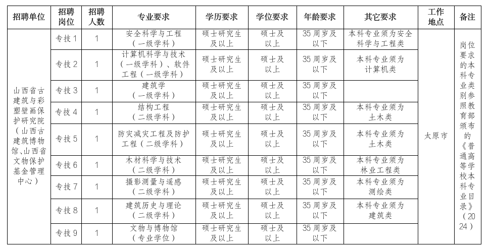 山西省文物局所屬事業(yè)單位2024年公開(kāi)招聘工作人員崗位表