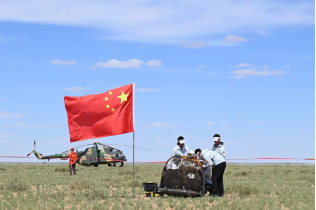 2024年6月25日14時(shí)7分,嫦娥六號(hào)返回器攜帶來自月背的月球樣品安全著陸在內(nèi)蒙古四子王旗預(yù)定區(qū)域,探月工程嫦娥六號(hào)任務(wù)取得圓滿成功。圖片來源:新華社