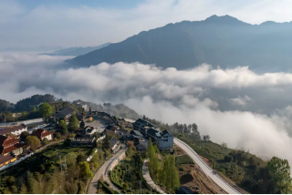 云霧環(huán)繞的景寧縣鶴溪街道惠明寺村。圖片來源:新華社