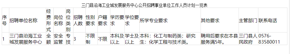 附件:三門(mén)縣沿海工業(yè)城發(fā)展服務(wù)中心公開(kāi)招聘事業(yè)單位工作人員計(jì)劃一覽表