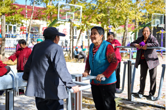 居住在河北省康??h土城子鎮(zhèn)互助幸福院的老人們在院子里休閑(2023年10月14日攝)。新華社記者牟宇 攝