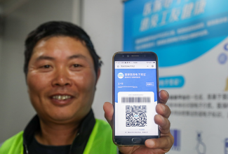 來自安徽的農(nóng)民工王亞平展示已激活的醫(yī)保電子憑證(2020年10月20日攝)。新華社記者丁汀 攝