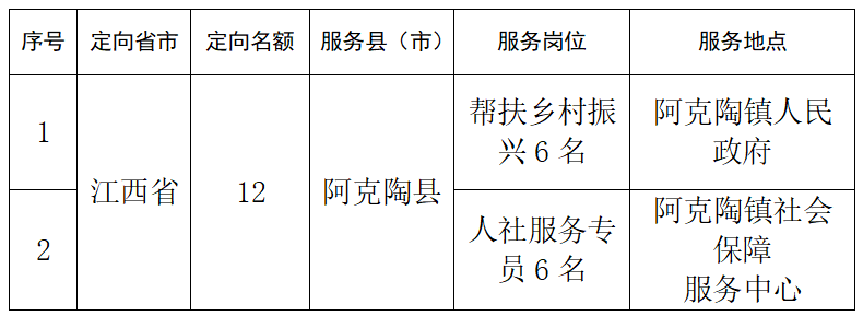 (二)服務(wù)崗位:克州阿克陶縣幫扶鄉(xiāng)村振興、人社服務(wù)平臺等基層工作崗位(具體崗位見附件1)。