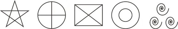 出現(xiàn)典型數(shù)筆畫的圖形考慮數(shù)筆畫。當(dāng)題干中出現(xiàn)五角星(四角星、六角星)、月亮、切圓、外接圓、“日”字的變形圖,如圓柱,一般會(huì)考查一筆畫;另外,若出現(xiàn)“田”字的變形圖,字母“A”的變形圖則會(huì)考查兩筆畫。