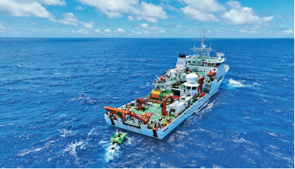 近期,我國深海礦產資源開發(fā)關鍵技術研究與裝備研制取得重大突破,由上海交通大學自主研制的深海重載作業(yè)采礦車工程樣機“開拓二號”成功完成海試。圖為2024年6月22日拍攝的“開拓二號”海試現(xiàn)場(無人機照片)。新華社發(fā)上海交通大學供圖