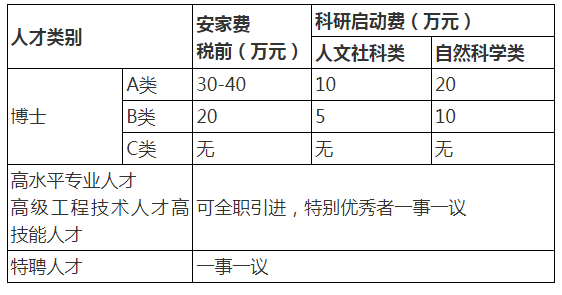 具有博士研究生學(xué)歷學(xué)位,年齡一般不超過40周歲(特別優(yōu)秀者可放寬至45周歲)。經(jīng)人才評(píng)估,確定為A、B、C類,可享受相應(yīng)待遇。
