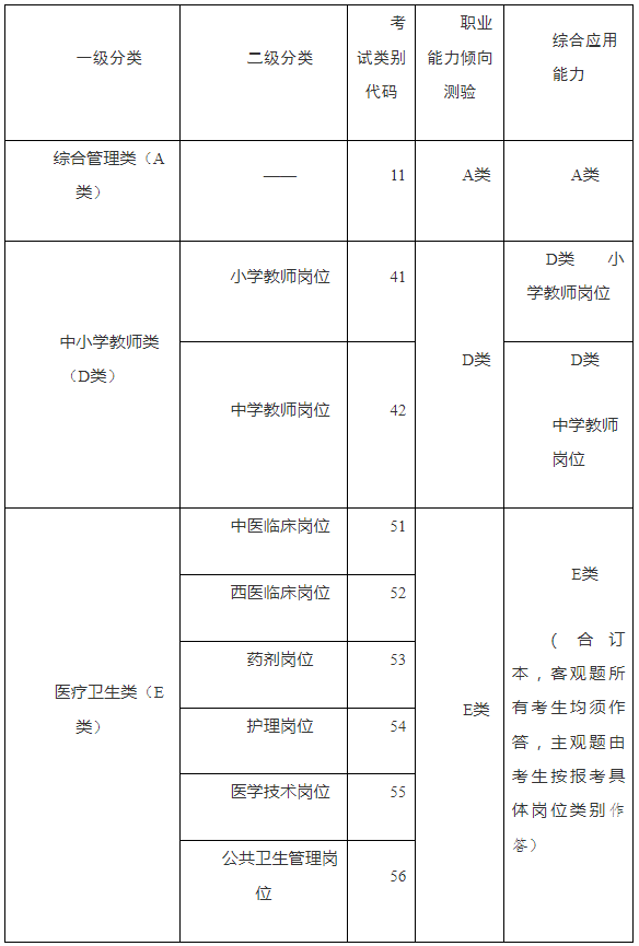 天水市事業(yè)單位公開招聘考試分類表