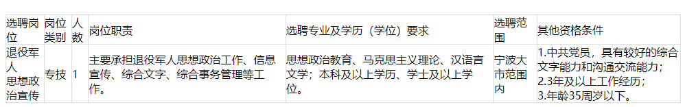 寧波市退役軍人事務(wù)局下屬事業(yè)單位公開選聘工作人員公告
