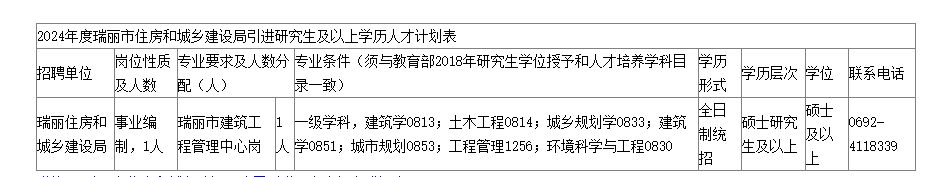 瑞麗市住房和城鄉(xiāng)建設(shè)局2024年度公開引進(jìn)碩士研究生公告