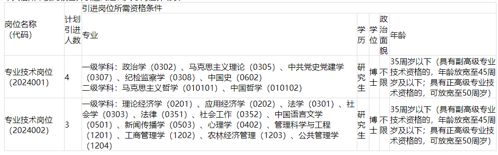 博士研究生,年齡35周歲及以下(1988年9月1日及以后出生,以此類推)。具有副高級(jí)專業(yè)技術(shù)資格的,年齡放寬至45周歲及以下;具有正高級(jí)專業(yè)技術(shù)資格的放寬至50周歲及以下。在讀博士研究生報(bào)考的,學(xué)歷、學(xué)位證書須于2025年12月31日前取得。同等條件下,中共黨員(或中共預(yù)備黨員)優(yōu)先。
