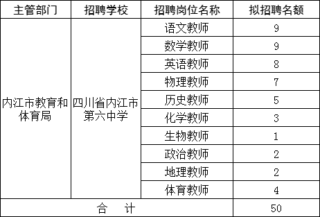 因?qū)W校工作需要,內(nèi)江市第六中學(xué)擬公開(kāi)考核招聘優(yōu)秀教師。現(xiàn)將有關(guān)事項(xiàng)公告如下: