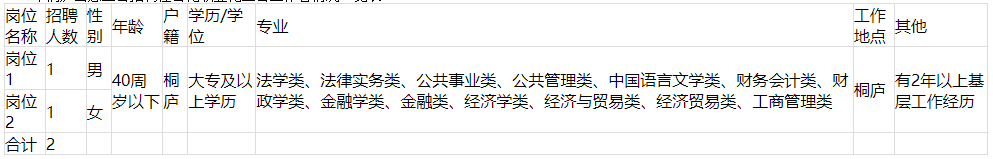 6.大專及以上學(xué)歷,且有2年及以上基層工作經(jīng)歷(在全日制學(xué)校就讀期間參加社會(huì)實(shí)踐、實(shí)習(xí)、兼職等不能作為工作經(jīng)歷)。