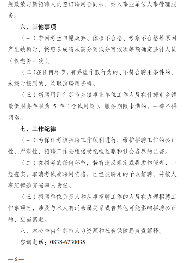 什邡市人力資源和社會保障局關于2024年從“大學生志愿服務西部計劃”項目人員中考核招聘鄉(xiāng)鎮(zhèn)事業(yè)單位工作人員的公告