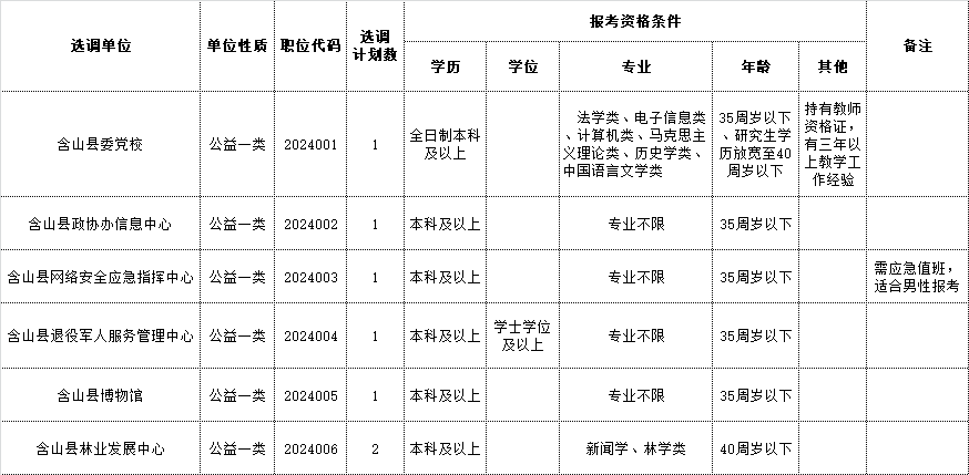 附件1:2024年含山縣部分事業(yè)單位公開選調工作人員崗位表