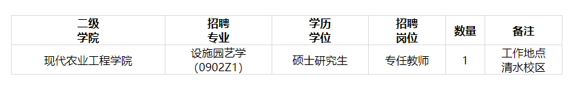 甘肅林業(yè)職業(yè)技術大學現(xiàn)代農(nóng)業(yè)工程學院2025年招聘碩士學歷學位專業(yè)教師公告