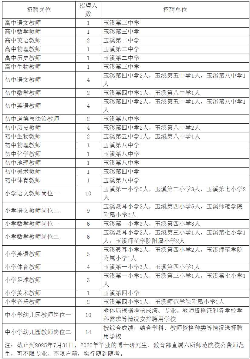 具體崗位及條件詳見《云南省玉溪市紅塔區(qū)公開招聘2025年畢業(yè)生崗位計劃表》(附件2,以下簡稱崗位表)