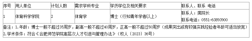 合肥師范學院體育科學學院引進高層次人才公告