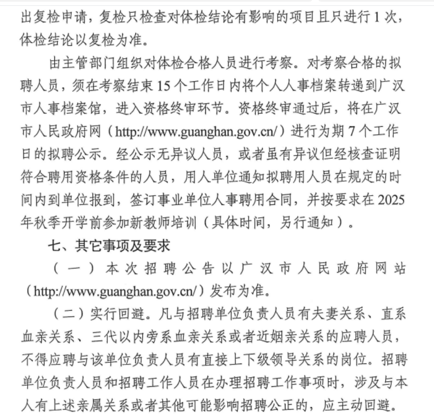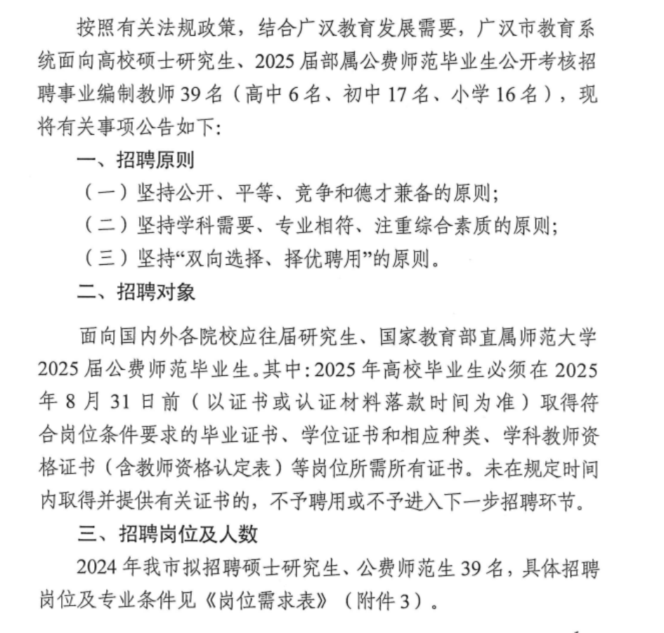 四川德陽(yáng)廣漢市教育系統(tǒng)面向研究生和2025屆部屬公費(fèi)師范畢業(yè)生招聘教師39人公告