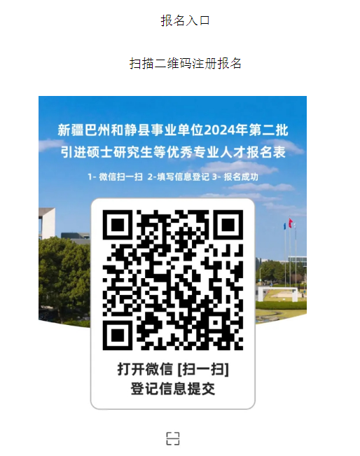 ?。ㄒ唬﹫竺?。報名時間自發(fā)布公告之日起至10月31日,采取網(wǎng)上報名的方式進行。具體方法可掃描二維碼(見報名入口)填報,每人僅限填報一個崗位,報名人員須按照畢業(yè)證專業(yè)名稱,對照國家教育行政部門發(fā)布的最新版高等教育學科專業(yè)目錄鏈接(附件2),選擇符合自身學歷、專業(yè)條件的崗位報名。因填報信息虛假、錯誤理解引進條件等原因造成的后果由報名人員自行承擔。