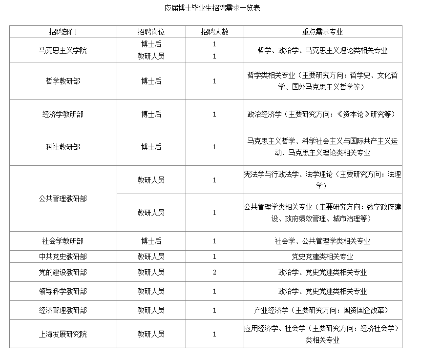 中共上海市委黨校(上海行政學(xué)院)公開(kāi)招聘高層次人才和應(yīng)屆博士畢業(yè)生公告