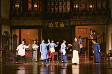 2024年6月28日至7月10日,北京人藝京味兒經(jīng)典大戲《天下第一樓》重張上演,邀新老“顧客”再聚老字號“福聚德”,品“京師美饌”,解“苦辣酸甜”?!短煜碌谝粯恰纷鳛楸本┤怂嚨目醇覒蛑?,自1988年上演至今已36年,是北京人藝京味兒經(jīng)典的代表作之一。圖為該劇劇照。中國文聯(lián)供圖