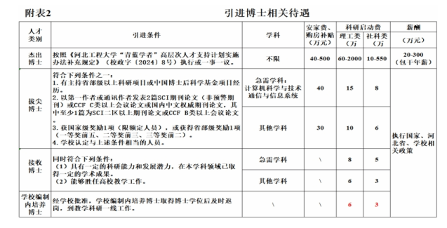 1.按照引進博士人才層次和學科需要,可享受對應的安家費、購房補貼和科研啟動費待遇(見附表2)。