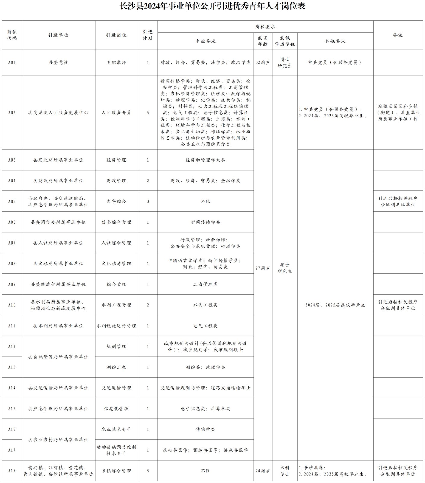 長(zhǎng)沙縣2024年事業(yè)單位公開引進(jìn)優(yōu)秀青年人才公告
