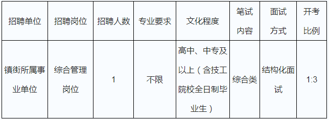 為保證工作的連續(xù)性,招聘單位為考錄人員現(xiàn)工作單位所在的鄉(xiāng)鎮(zhèn)人民政府、城區(qū)街道辦事處所屬事業(yè)單位。