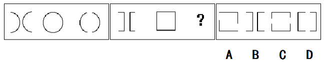 解答:正確答案為D。因?yàn)橹挥蠨能使兩套圖形具有相似性,僅僅元素不同,一個(gè)是半圓,一個(gè)是半個(gè)正方形,但兩套圖形中元素的排列規(guī)律完全相同。