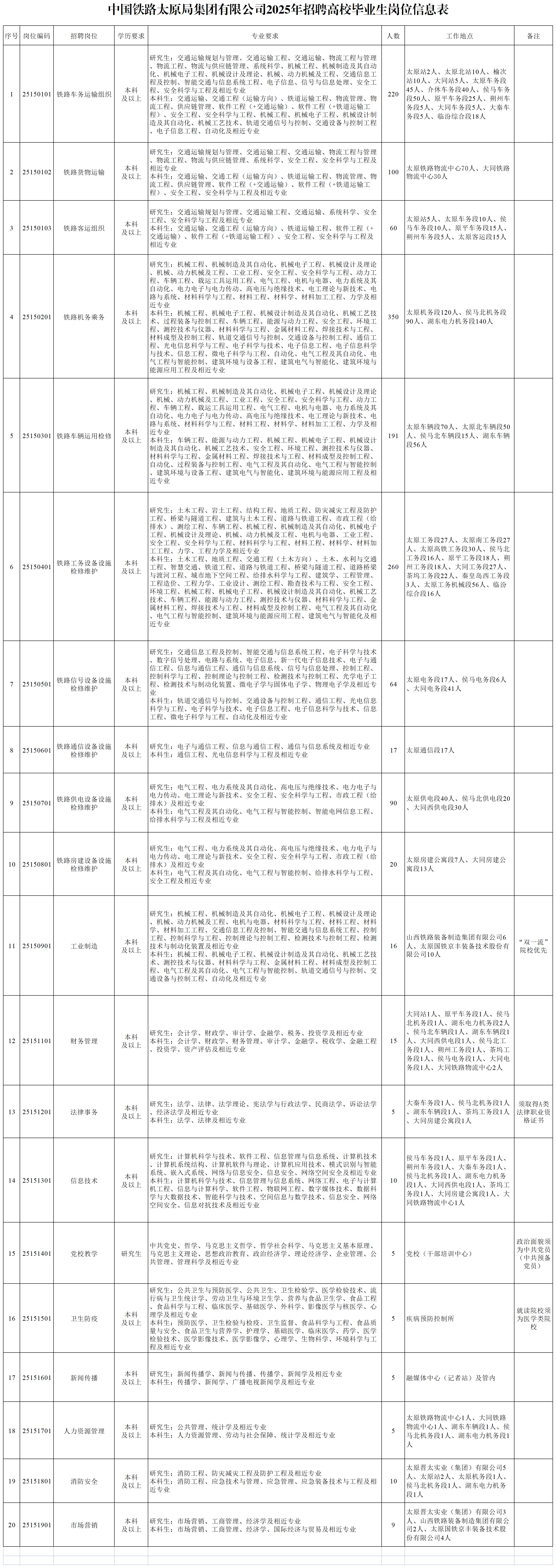 中國(guó)鐵路太原局集團(tuán)有限公司2025年招聘高校畢業(yè)生公告(一)
