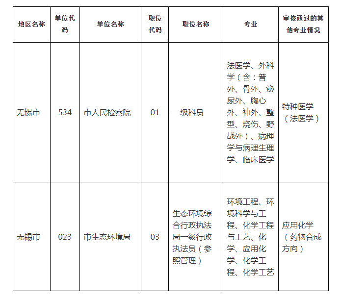 2025年江蘇無(wú)錫公務(wù)員考試有關(guān)職位專業(yè)審核情況公告(六)