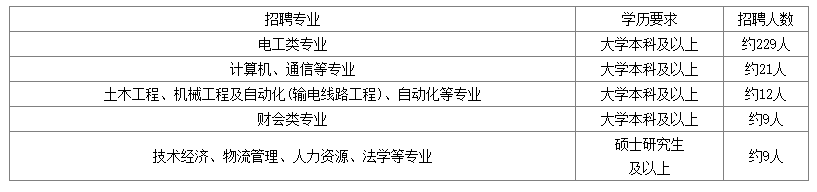 2.招聘崗位:規(guī)劃、建設、運行、運維檢修、營銷、信息通信、物資和培訓教育等專業(yè)一線崗位。