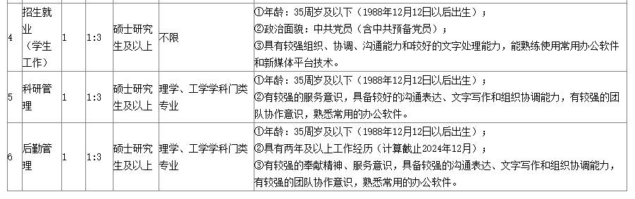 (三)年齡要求在35周歲及以下(1988年12月12日后出生),符合招聘崗位所需的其他條件。
