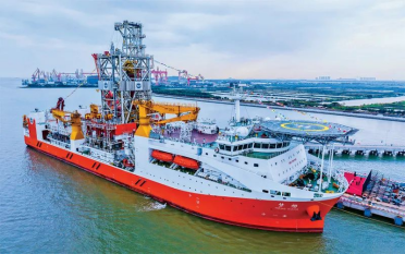 2024年11月17日,擁有最大11000米的鉆深能力、我國自主設(shè)計(jì)建造的首艘大洋鉆探船“夢想”號(hào)在廣州正式入列,標(biāo)志著我國深海探測關(guān)鍵技術(shù)裝備取得重大突破。圖為當(dāng)日拍攝的靠泊在廣州海洋地質(zhì)調(diào)查局科考碼頭的大洋鉆探船“夢想”號(hào)。新華社記者劉大偉/攝