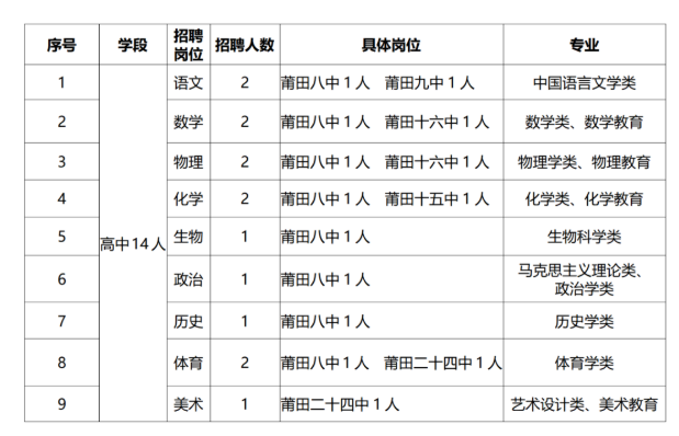 在莆田市人社局(http://rsj.putian.gov.cn)、莆田市教育局(http://jyj.putian.gov.cn)、莆田市荔城區(qū)教育局(http://www.ptlc.gov.cn/ztzl/jyzl/)公布的網(wǎng)站、高校畢業(yè)生就業(yè)服務(wù)指導(dǎo)中心等有關(guān)網(wǎng)站上發(fā)布招聘方案等信息。