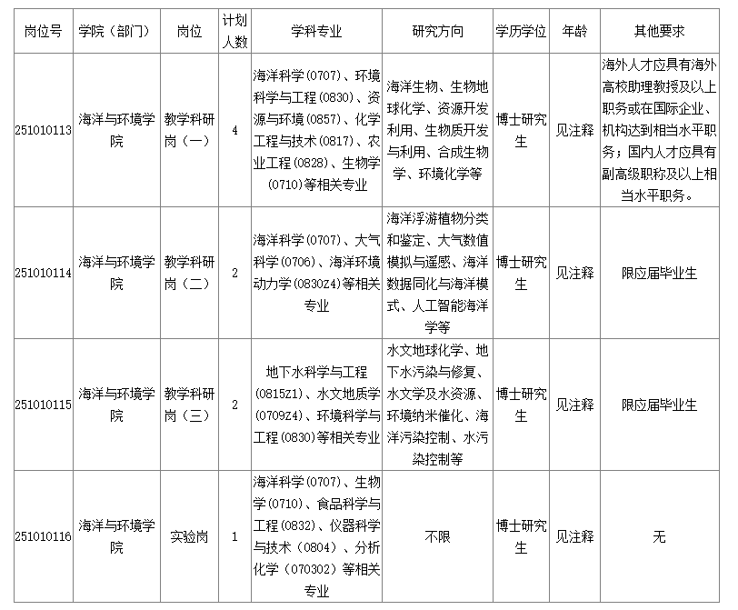 誠摯歡迎海內外青年才俊加盟海洋與環(huán)境學院!